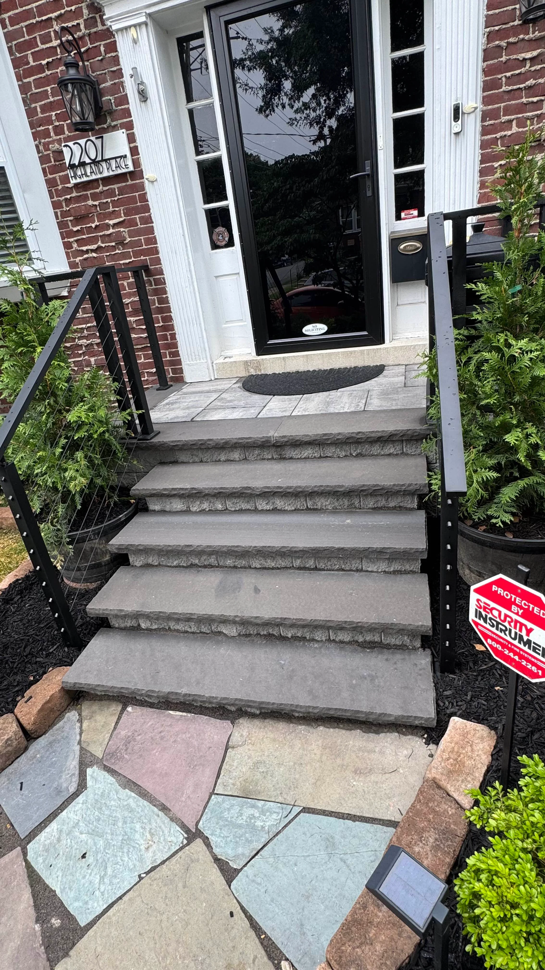 This family wanted to replace a cracked, dated concrete stoop with a welcoming, durable entry. The goal was a natural-stone look that boosts curb appeal and handles Delaware weather without pooling or heaving.